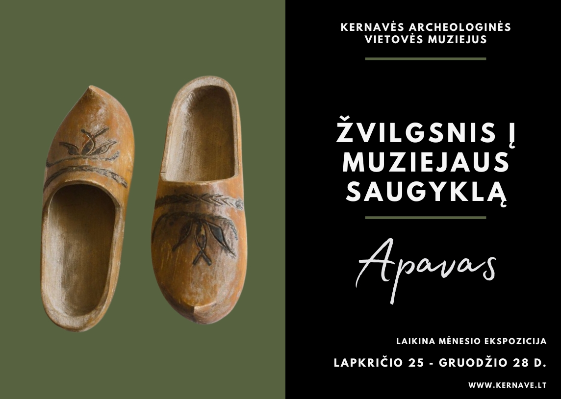 Šį mėnesį rubrikoje „Žvilgsnis į muziejaus saugyklas“ kviečiame susipažinti su tradiciniu Kernavės apylinkių apavu, atskleidžiančiu vietos žmonių kasdienybę, amatų tradicijas ir socialinę aplinką nuo senųjų laikų iki XX a. pradžios.