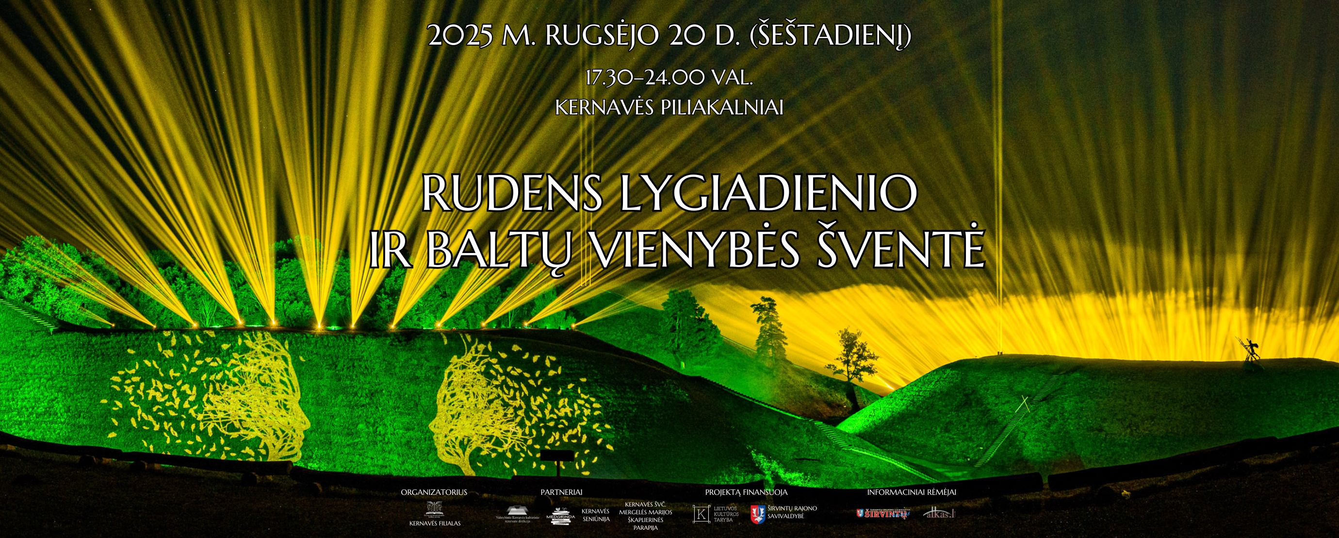 Diena lygi nakčiai – naktis lygi dienai. Saulės spindėjimo dangaus skliauste trukmei sutrumpėjus ir vėl metų ratu leisimės žemyn... Tradiciškai rugsėjo 20 d. (šeštadienį), mistika alsuojančiuose Kernavės piliakalniuose kviečiame įspūdingai sutikti Rudens lygiadienio ir baltų vienybės šventę, skirtą pažymėti astronominį gamtos virsmą ir simboliniu patyrimu priminti baltų genčių susivienijimo svarbą.