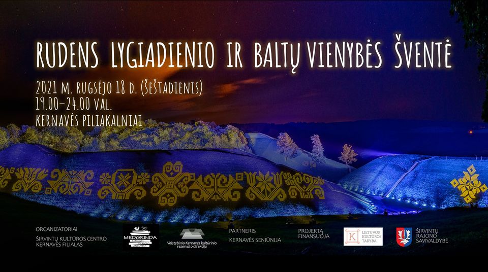 Rugsėjo 18 d. (šeštadienį) 19.00 - 24.00 val. Rudens lygiadienio ir baltų vienybės šventė Kernavėje skirta pažymėti astronominį gamtos virsmą ir simboliniu patyrimu priminti baltų genčių susivienijimo svarbą. Kviečiame!