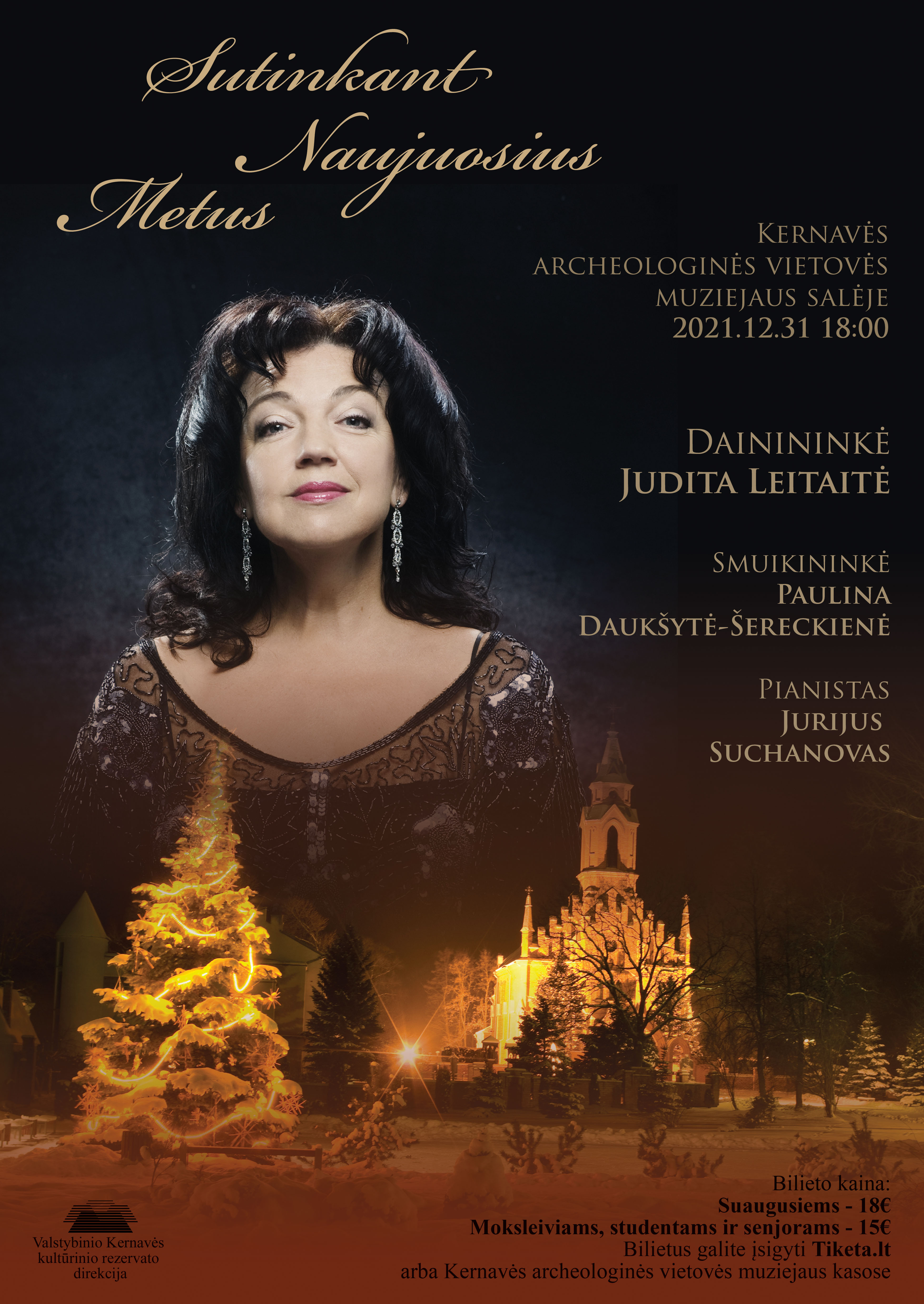 Su nekantrumu dalinamės džiugia žinia - naujametiniu klasikinės muzikos koncertu Kernavės archeologinės vietovės muziejuje. Jau gruodžio 31-ąją, 18:00 Kernavės muziejaus salėje skambės daininkės Juditos Leitaitės, smuikininkės Paulinos Daukšytės-Šereckienės ir pianisto Jurijaus Suchanovo atliekami klasikinės muzikos kūriniai.